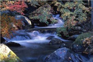 花貫ダムから名馬里ヶ淵、そして小滝沢キャンプ場にかけて美しい景観が続いています。ハイキングコースとしても最適です。 渓谷にかかる汐見滝吊り橋からの眺めはすばらしく、特に秋は、川沿いに生い茂る木々の枝が左右からせり出し、華やかな紅葉と花貫川の清流や汐見滝も楽しめます。