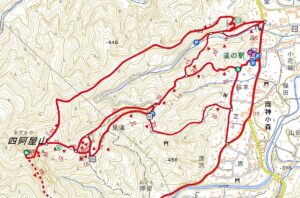 薬師の湯駐車場9:00⇒登山口9:05⇒分岐9:30⇒フクジュソウ園地10:15⇒両神神社奥社10:30⇒四阿屋山11:00-昼食12:00⇒両神神社奥社12:25⇒登山口13:40⇒薬師の湯駐車場13:55