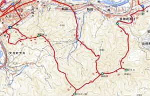 1.御前山(730m)、菊花山(644m)、時間3:20、距離5.2km、上り626m、下り597、中級