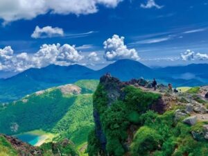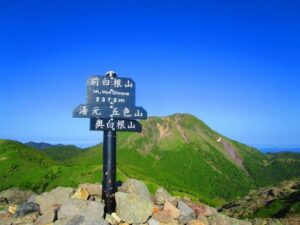 群馬県と栃木県の県境に位置する日光火山群の主峰です。標高2,578m、関東以北では最も高く、周辺に座禅山、前白根山、白根隠山の外輪山を従え、その内側に弥陀ヶ池、五色沼の湖沼があります。景観にすぐれ、高山植物も豊富なことから、昭和32年に日光国立公園の特別保護地区に指定されました。