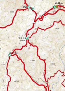作業平口駐車場9:00⇒一休坂分岐9:40⇒ヤブ沢峠10:40⇒笠取小屋11:05⇒雁峠分岐11:20⇒笠取山11:55-昼食12:25⇒雁峠分岐12:55⇒笠取小屋13:05⇒分岐13:55⇒一休坂分岐14:05⇒作業平口駐車場14:35