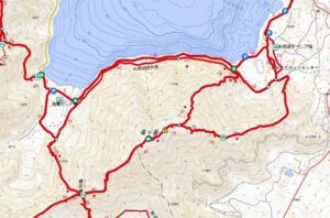 本栖湖駐車場8:30⇒本栖湖キャンプ場入口8:37⇒分岐8:47⇒見晴台10:02⇒分岐10:37⇒龍ヶ岳10:52-昼食11:52⇒端足峠12:32⇒分岐13:17⇒龍ヶ岳登山口13:32⇒(車道)湖畔登山口14:07⇒本栖湖駐車場14:10